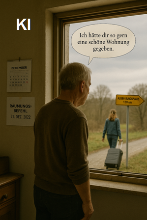 🟡 Kommentar: Ahhja, „mehr als nachvollziehbar“ soll es also sein, dass der Vermieter seine Tochter anderweitig untergebracht hat – weil ich angeblich signalisiert hätte, dass ich nicht ausziehen werde? Ist das wirklich so? Wohl kaum! Seit dem Vergleich vom 22.12.2021 stand doch fest, dass ich spätestens zum 31.12.2022 ausziehen muss – ohne Räumungsschutz. Und der Vermieter hat sogar selbst schriftlich bestätigt, dass er mich rausschmeißen wird, wenn ich nicht ausziehe, Zitat Wiederholung: „Ich habe mit dem Vergleich einen vollstreckbaren Titel […]. So oder so!!!“
